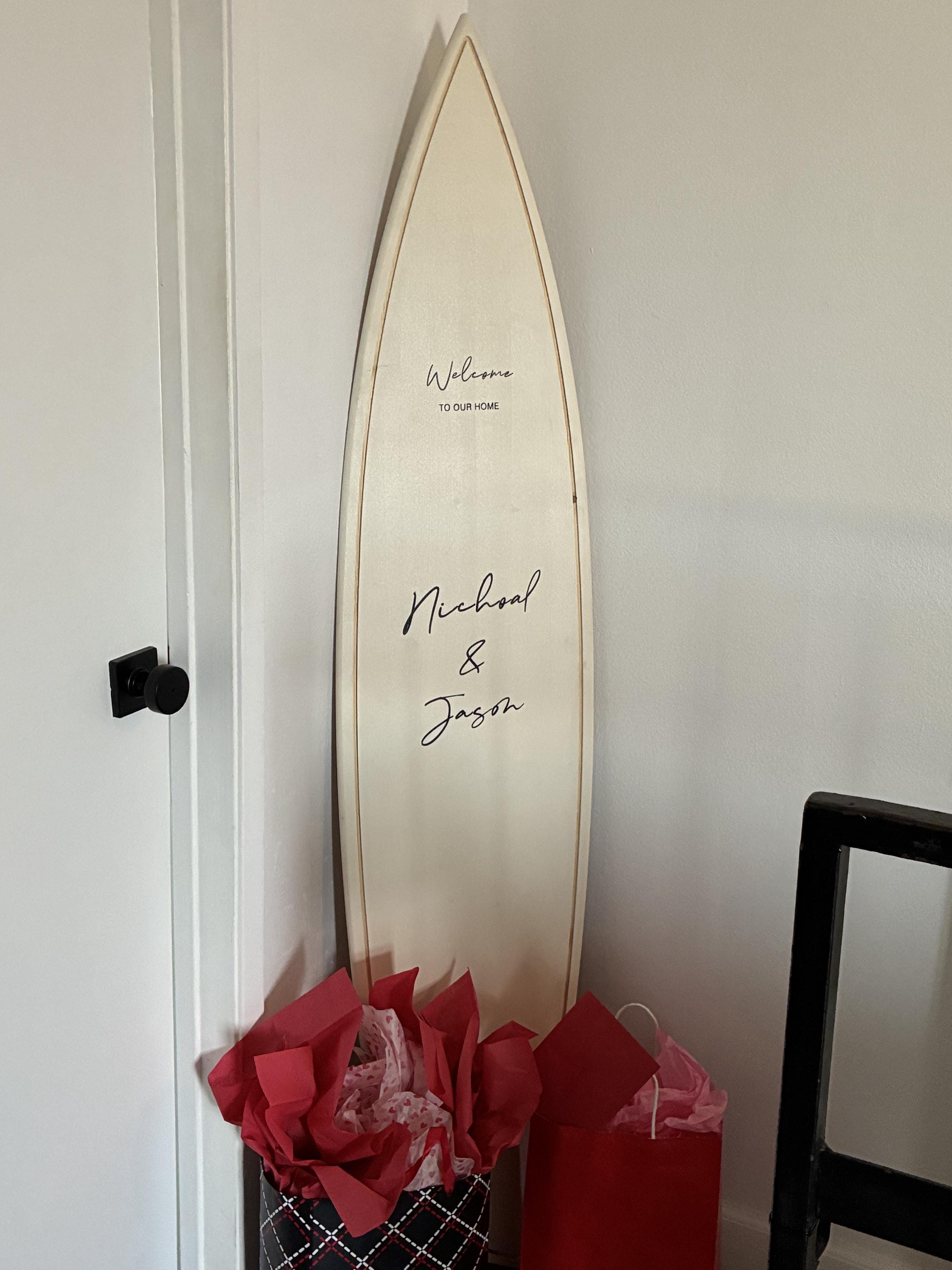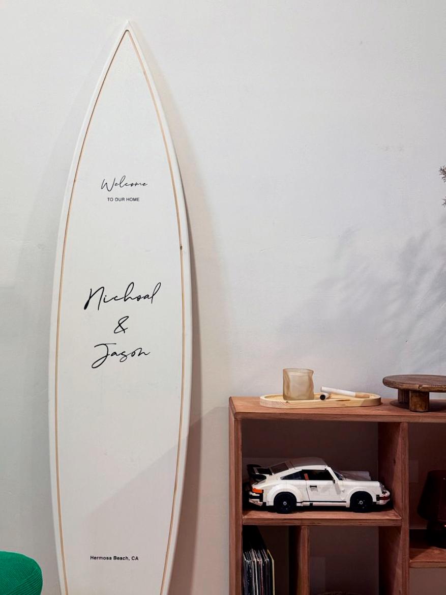 Designed for couples who love the ocean, adventure, and meaningful details, this unique alternative to a traditional guest book allows your friends and family to leave heartfelt messages directly on a beautifully crafted wooden surfboard. Each board becomes a one-of-a-kind keepsake you’ll treasure for years to come.